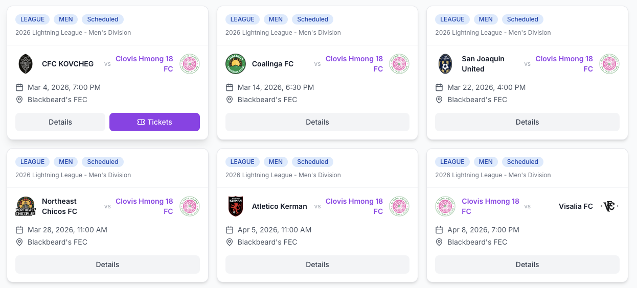 2026 Lightning League Schedule